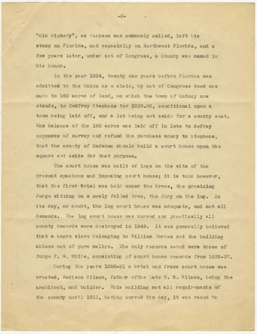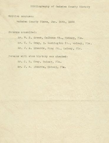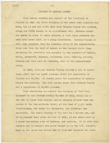 Brief history of Gadsden County, Florida collected by the Works Progress Administration's Historical Records Survey.